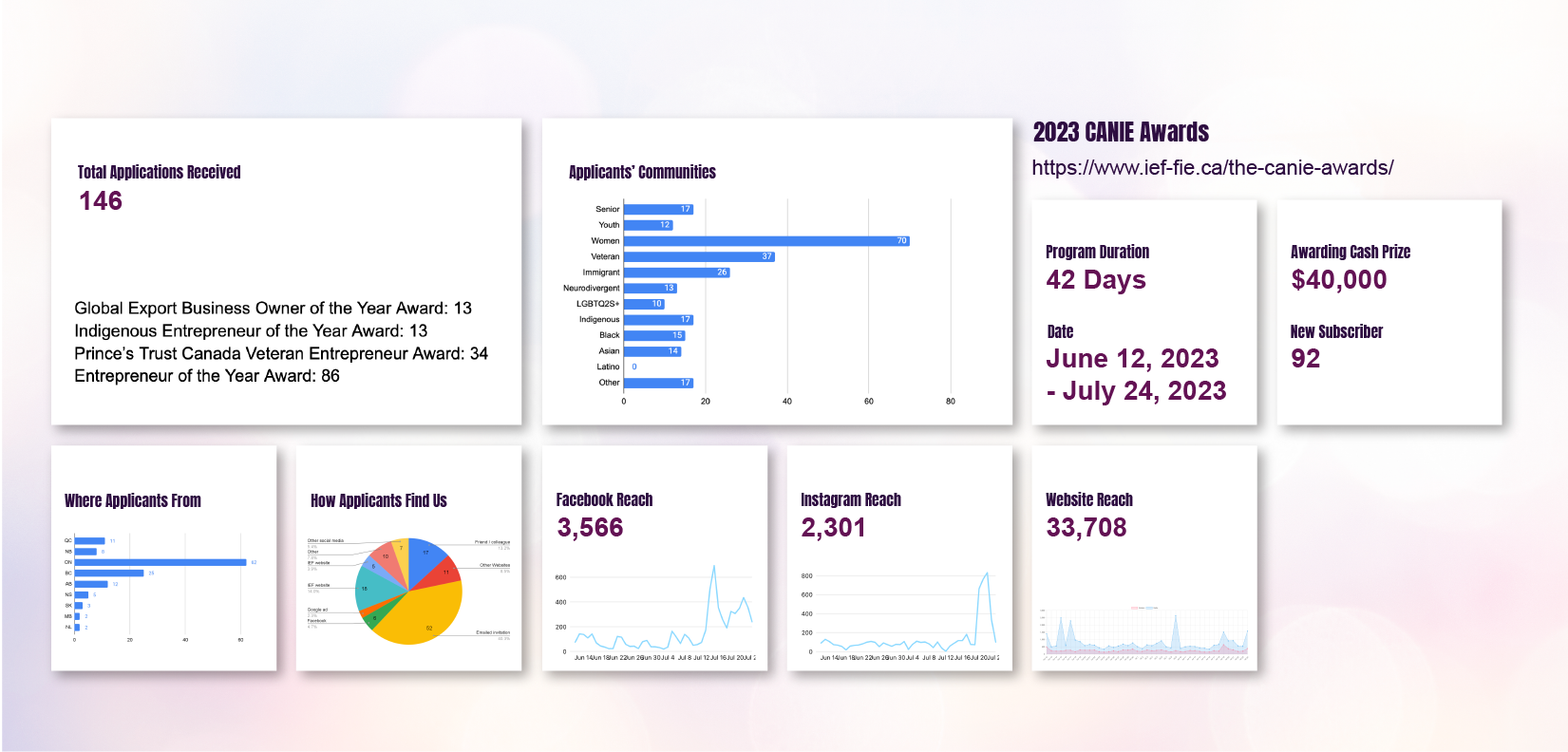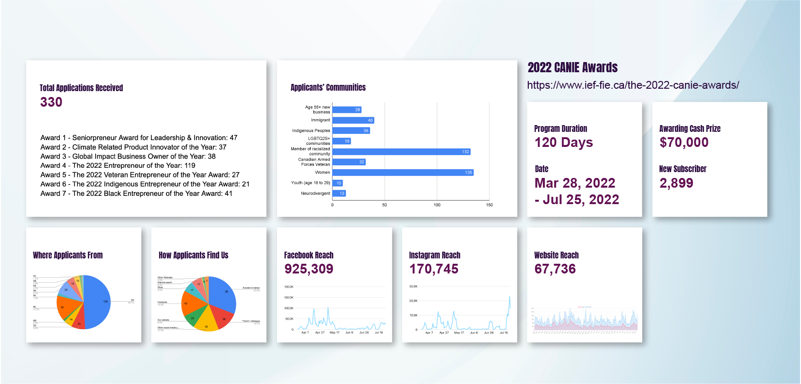 Once the CANIE Awards kick off, the team shifts into vigilant monitoring of backend data. This includes tracking webpage and social media channel statistics, along with keeping tabs on the number of applications in each category. The ongoing promotion strategy remains dynamic, adapting to the data received. For instance, if a particular category receives fewer applications, the team may strategically shift focus to Google/Meta Ads for that specific category. Alternatively, they might reach out via emails to related institutes to enhance program visibility.